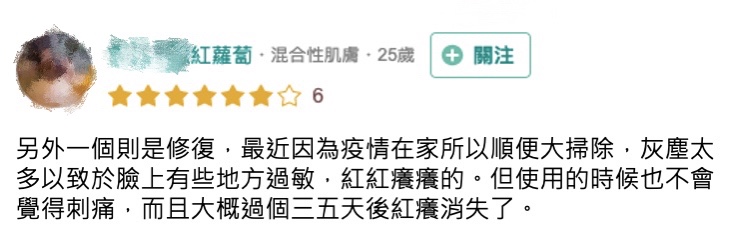 除了水感很輕盈的質地非常吸引人,擦完三五天竟然紅癢消失!意味我的爛臉也有救了